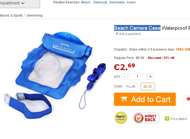 Etui étanche pour appareil photo à 2.69 euros port inclus
