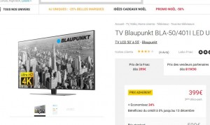 Super prix pour une grande tv Ultra haute définition dans les soldes : 399 euros sur le site de la fnac pour la tv BLA-50/401 de blaupunkt …