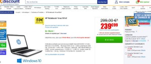 Très bonne affaire s’il vous faut un ultra portable : sur cdiscount , on peut voir à 239.99 euros l’ HP Notebook 14-ac101nf … un ultra portable 14 pouces, processeur celeron, 2 go de ram , 32go de disque ssd .. pour un poid de 1.9 kgs sous windows 10 … Un appareil destiné à la bureautique, à aller sur internet …