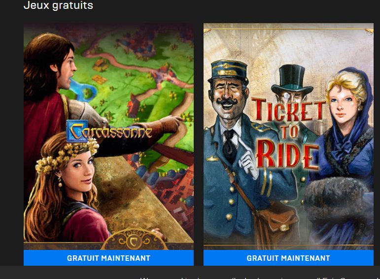 avec l’éditeur EPIC qui propose gratuitement jusqu’au 13 fevrier , 2 jeux qui sont des adaptations de jeux de plateaux