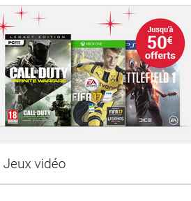 Il y a une offre qui concerne les jeux videos à partir de 20€ (tous les jeux pour toutes les plateformes) …