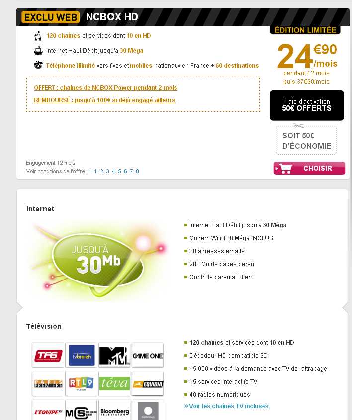 En effet l’offre NCBOX HD est à 24 euros 90 durant 12 mois et elle inclu :
