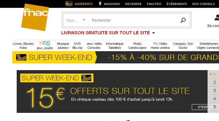 Offre adherent fnac: 15 euros offerts pour 100 d’achats jusqu’au 16 mars