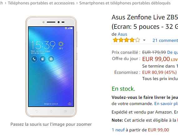 Bon plan pour un smartphone de marque : avec l’ASUS ZENFONE LIVE ZB501KL à moins de 100€ sur amazon …