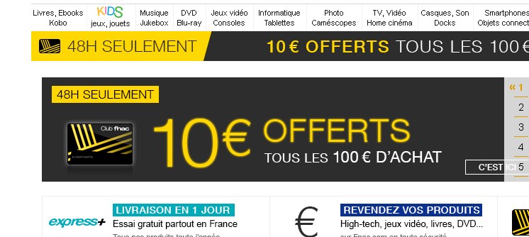 Promo Fnac: 10 euros par tranche de 100 et 10 euros la carte adherent jusqu’au 22 juin