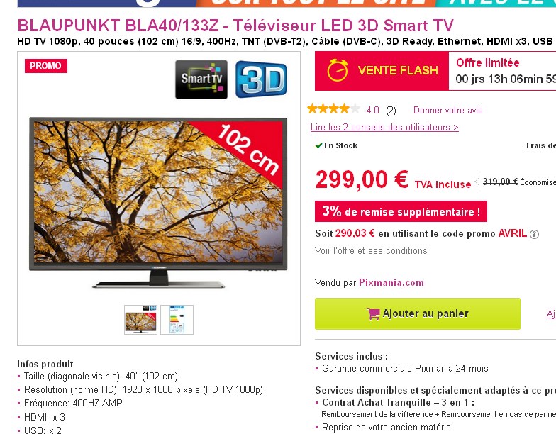 Smart tv 3d 40 pouces pas chère: 296 euros la blaupunkt bla40-133z … le 12 avril