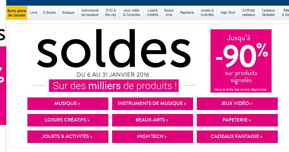Il y a sinon jusqu’à 50% sur les loisirs creatifs, 50% sur les jouets, jusqu’à 90% sur des articles musiques (partition …)