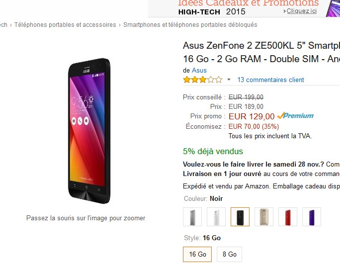 Super affaire pour un smartphone : l’asus zenfone2 est à 129 euros sur amazon en vente flash pour le black friday ..