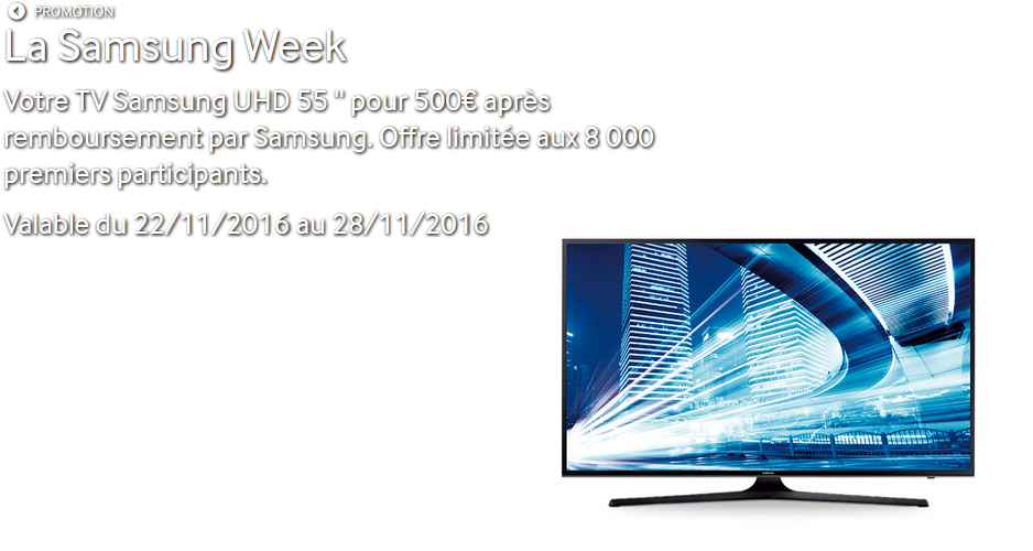 En effet pour l’achat d’une tv 55 pouces UE55KU6000 ou UK55KU6070 , on est remboursé de façon a ce que le prix de revient soit de 500€