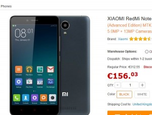 Super bon plan smartphone : XIAOMI REDMI NOTE 2 à 156 euros