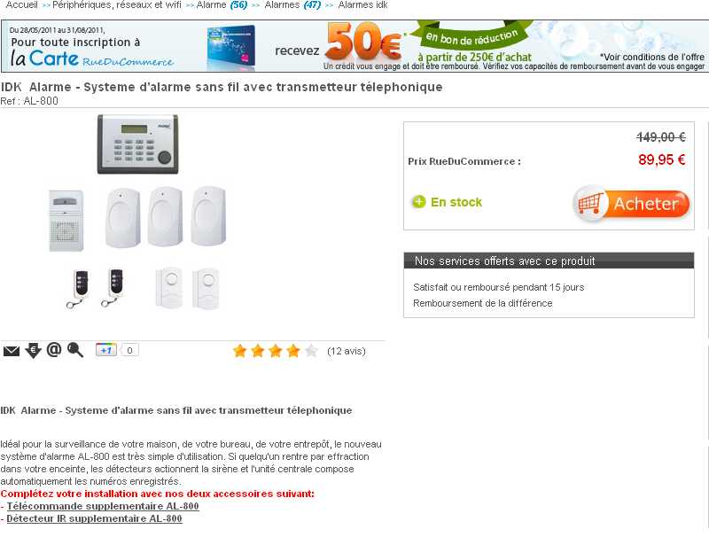 Cliquez ici pour voir cette alarme pour maison sur le site rueducommerce