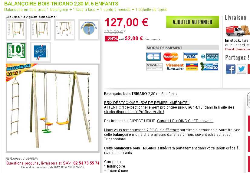 127 euros port inclu un portique en bois trigano pour 5 enfants