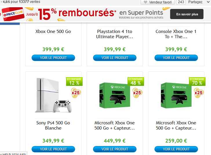 Bon plan consoles XBOX , PS4 , Nintendo avec 25 à 30% en bons d’achats chez priceminister