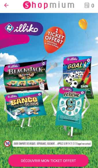 En effet sur l’application Shopmium jusqu’au 31 decembre on peut obtenir un coupon presenter chez le buraliste, et qui permettra d’avoir deux tickets ILLIKO pour le prix d’un (soit illiko black jack, illiko goal , illiko banco , illiko numéro fetiche )