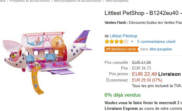 Bonne affaire pour un jouet pour noel pour petites filles : l’avion little petshop est à 22.49 euros ..