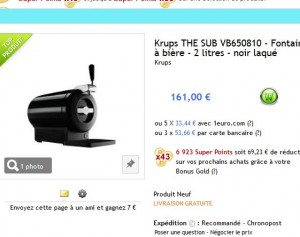Si vous voulez une machine à bieres pour vous faire des pressions comme dans les bars , offre interessante le 5 novembre chez priceminister ..