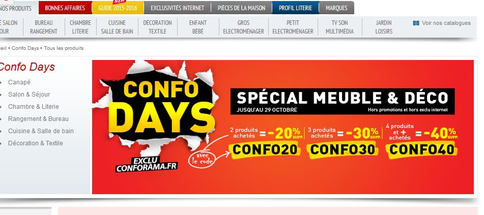 Bon plan meubles : 40 pourcent de réduction sur conforama .. jusqu’au 5 novembre