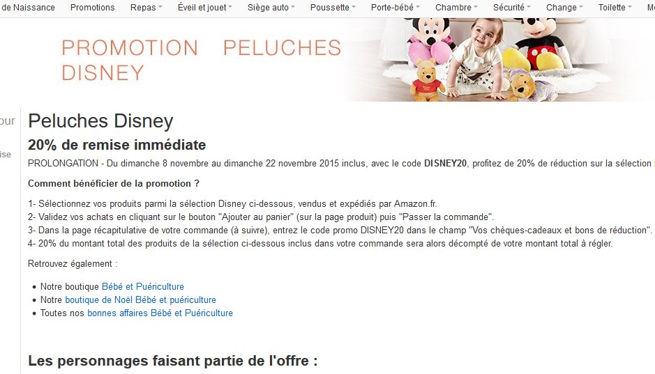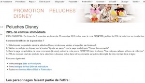 Bonne affaire sur des peluches disney sur amazon … Avec certaines déjà à prix réduits , et en plus un code de réduction qui permet d’avoir 20% de remise n plus ..