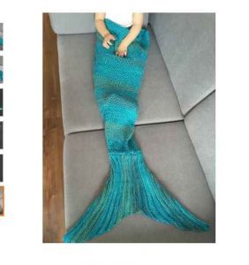 Une couverture queue de Sirene que l’on peut acheter pour 8€ le modele enfant et à 13€ le modele pour adulte …