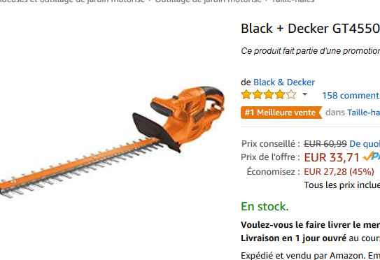 En plus on a black et decker qui propose une offre de remboursement de 20% sur ce taille haie ( et sur d’autres outillages de coupe ) ..