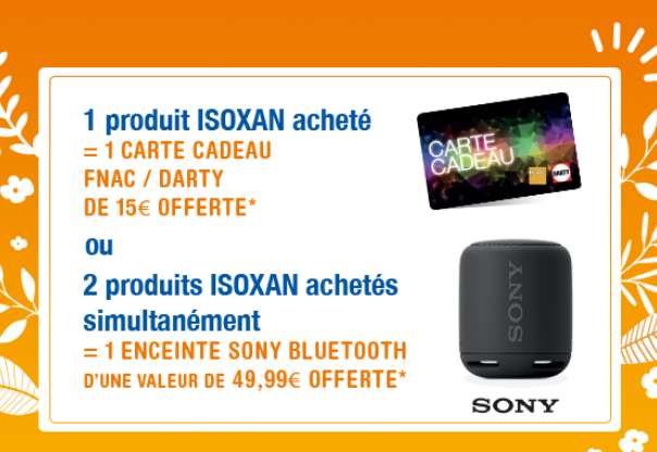 Jusqu’au 31 mai 2019 , pour l’achat dans une pharmacie participante d’une boite de ISOXAN on recevra une carte cadeau Fnac Darty de 15€