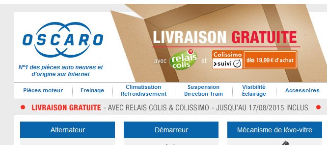 Oscaro : livraison gratuite sans minimum d’achats .. jusqu’au 29 septembre