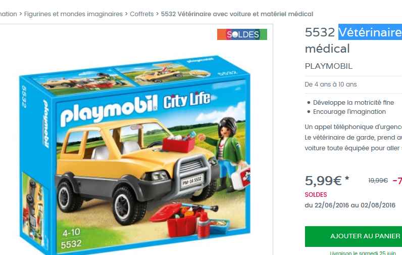 Super affaire jouet playmobil : sur oxybul soldé à 70% il y a la boite Playmobil Veterinaire avec voiture vendue à 5.99€ seulement …