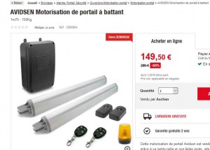Auchan annonce une remise de 50% , et effectivement les kits advisen pour des portails ayant ces caracteristiques se vendent bien ailleurs autour de 300 euros …