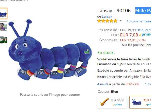 Super affaire pour un cadeau pour un petit enfant : la Peluche Mille Pa-pattes de Lansay à 7€ seulement dans sa version avec 10 pattes …
