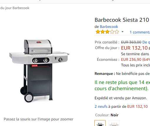Super prix: 130€ le barbecue gaz Barbecook SIESTA 210