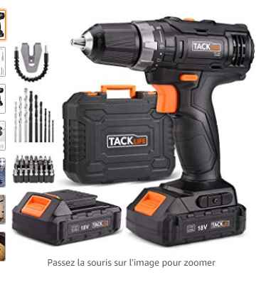 57.59€ la perceuse TACKLIFE 18V avec 2 batteries