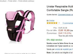 16.88€ seulement un porte bébé ventral vendu par un vendeur tiers mais expedié par amazon..