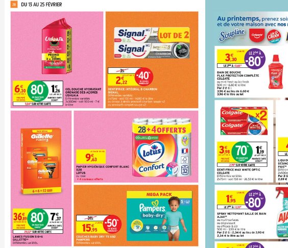 Pour la période du 13 au 25 février , les magasins intermarché proposent un prospectus très intéressants avec plusieurs produits qui bénéficient de 80% de crédit sur la carte de fidélité