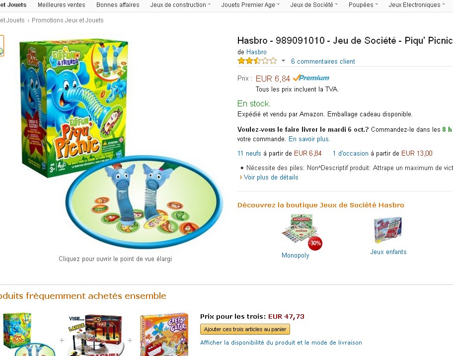 Super affaire : jeu pour enfant Piqu picnic à moins de 7 euros (voire moins de 6)