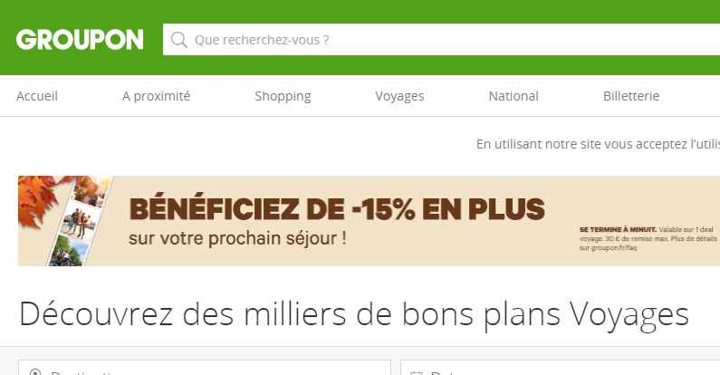 Bon plan Groupon avec un nouveau code de réduction que l’on peut utiliser sur le site de deals asur les offres de voyages et séjours :