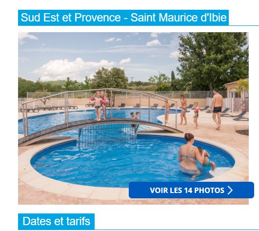 Sur Leclerc voyage , on peut voir de bons prix pour un séjour en mobil home au camping 3 etoiles » SOUS BOIS » situé à Saint Maurice d’IBIE