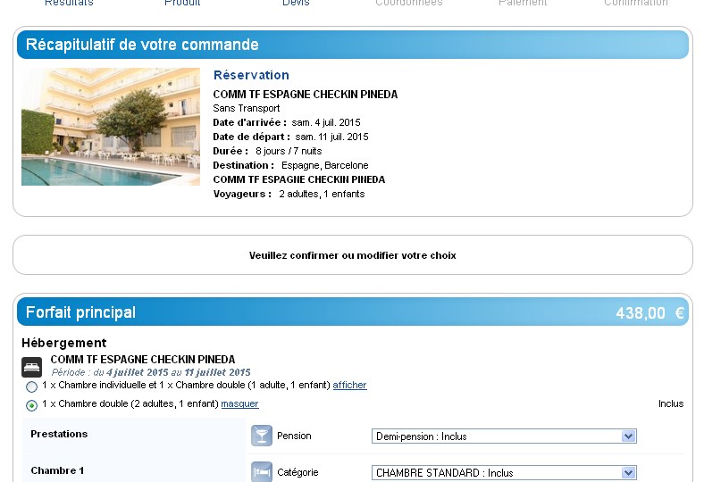A noter que par defaut quand on fait la réservation , cela reserve deux chambres ce qui est donc plus cher … il faut donc modifier cela afin de mettre le ou les enfants dans la meme chambre que les parents ..