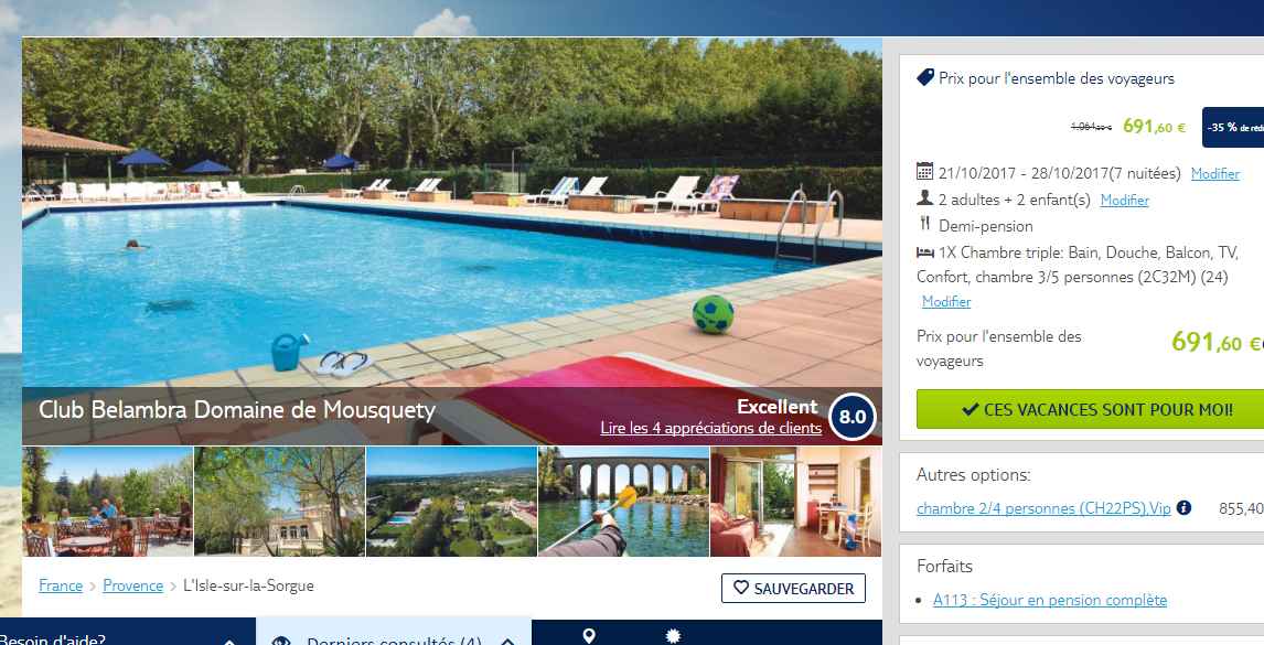 Toussaint: Belambra club l’isle sur la sorgue à 691€ pour 2ad + 2 enfants ( 1100 sur le site officiel)