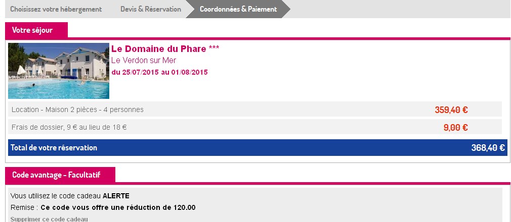 La maisonnette 2 pieces / 4 personnes de 33m2 est en promo à 479 euros mais on peut passer le code de réduction « ALERTE » et payer en tout donc 368 euros avec les frais de dossier inclus