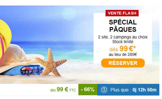 Sur le site carrefour voyage, il y a une offre à 99€ la semaine pour la location d’un mobil home dans deux campings : un au bord de l’Atlantique (à Ondres dans les Landes ) et un au bord de la mer (à Puget sur Argent)