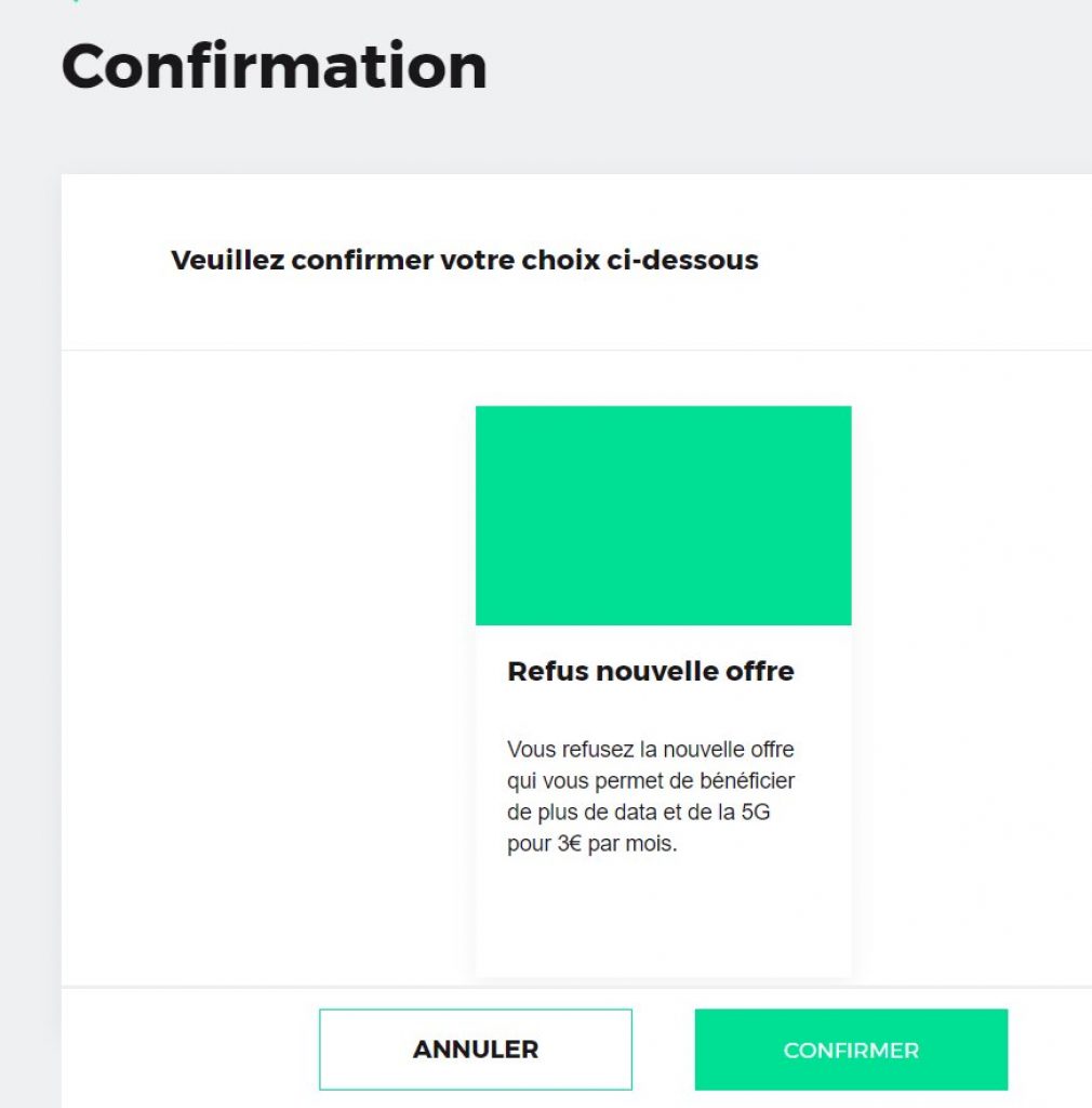 Apres avoir confirmé le refus de l’option, on recevra un email et un sms de confirmation de la bonne prise en compte de la demande et on continuera donc à payer le meme montant qu’auparavant sur ses prochaines factures …