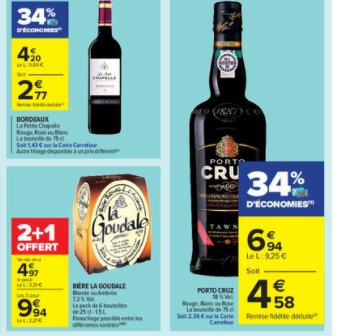 Pas de gros credit sur la carte de fidélité dans ce prospectus , mais cependant on appreciera les 34% sur le whyskie label 5 , sur le porto cruz  …