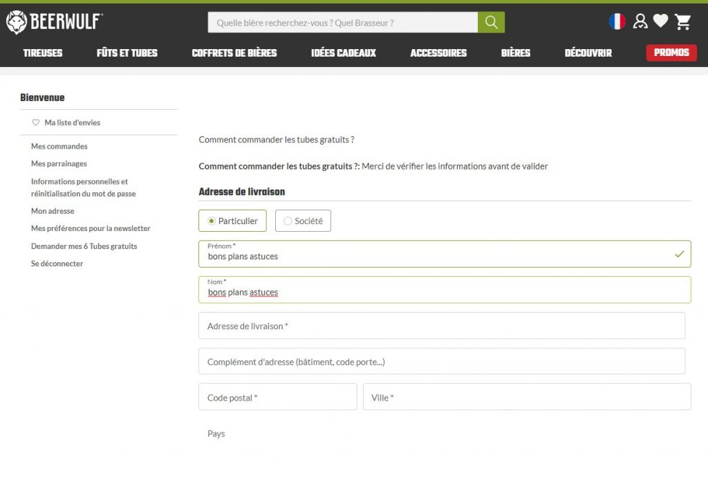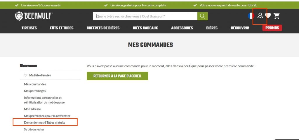 A noter que si vous aviez déjà un compte beerwulf , vous pouvez aller voir directement apres vous etre loggué si vous avez bien l’option de commandes des tubes gratuits ..
