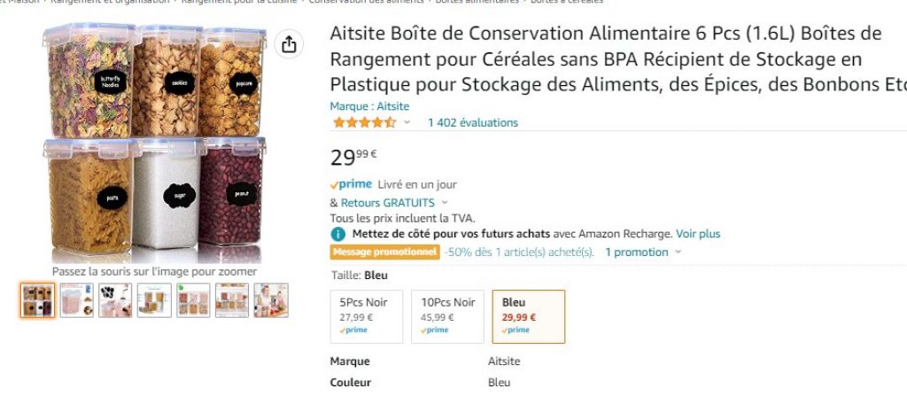 Sur Amazon, on peut profiter d’un code de réduction , le coupon « Z4Y3HFGE » , pour avoir 50% de réduction immediate sur un lot de 6 boites d’une capacité de 1.6 litres chacune ..