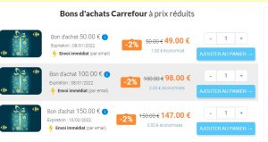 Ainsi si on possede la carte fnac , https://www.fnac.com/choisir-carte on peut acheter des cartes cadeaux carrefour avec 6% de remise
