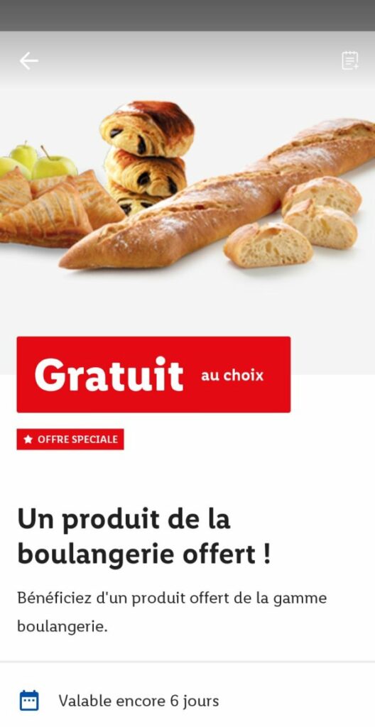 Un coupon boulangerie qui permet d’avoir un produit au choix parmi une grande liste