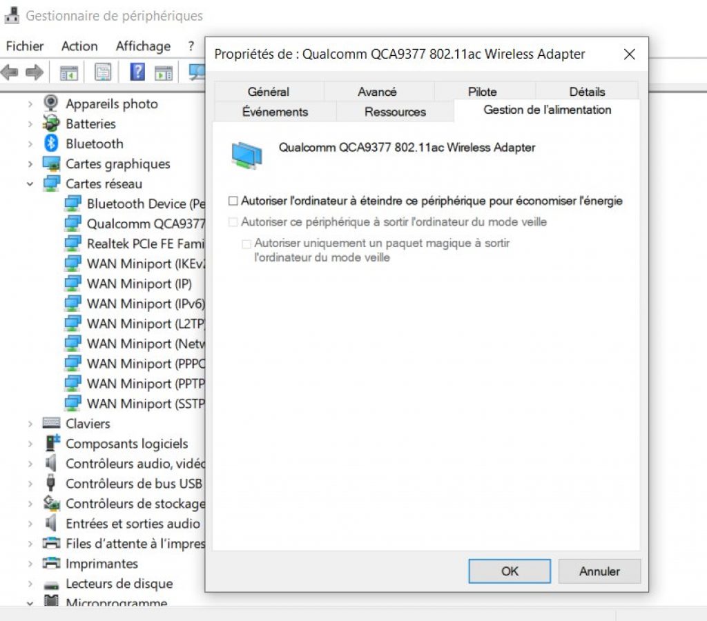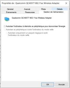 Windows10 : Désactiver la mise en veille de la carte wifi pour éviter les coupures réseau