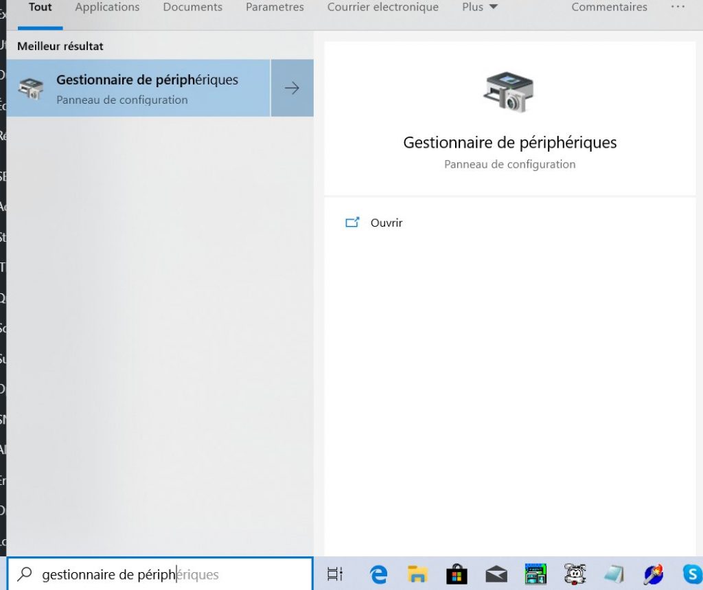 Dans la zone de recherche de windows , on va taper « gestionnaire de péripheriques » afin d’acceder à celui ci …