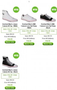 En effet, les baskets basses et hautes de type Converse qui sont déjà vendues à un super prix de 14.55 euros passent à 12.35 en utilisant le bon de reduction « 15EV » ..