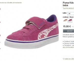 15 euros les baskets Puma Enfants roses ou marrons